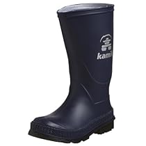 Keep your distance when your little boy is wearing the Kamik Stomp Boot or you may end up with a soaking-wet pant leg. The waterproof rubber upper makes his feet impervious to water (standing or falling) which makes splashing around in puddles next to irresistible. Kamik's Blazer rubber outsole ensures that he will keep his footing on wet surfaces. After an afternoon of play the soft EVA innersole removes for some much-needed airing out.